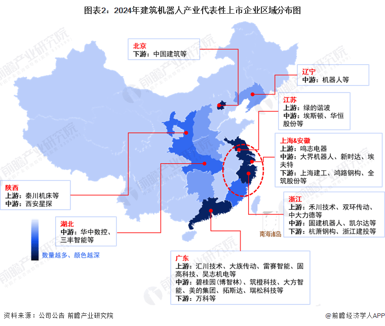 从中国建建机械人财产链相关企业区域分布环境来看,广东省、江苏省、浙江省、上海市等地汇聚了较多的配套企业,财产堆积效应较好。广东地域建建机械人代表性企业有博智林、特辰科技、中建科技等,响应的上逛企业有汇川手艺、富家传动、雷赛智能等;长三角区域的江苏、浙江、上海市相关企业也较为丰硕,汇聚了埃斯顿、大界机械人、绿的谐波、鸣志电器等代表性企业。