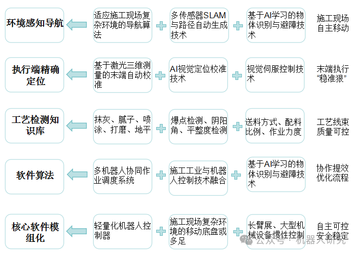 (2)公用建建机械人研发的具象化。因为建建建制工程中施工厂景多样且具有高奇特征,各细分范畴对机械人的要求沉合度低,需抓住细分范畴的工艺特点,建建机械人研发趋于细分范畴定制化。例如正在反沉力场景下工替代的抹灰机械人,需着沉节制机械人正在功课时对墙面的压力的平均性、平稳性。